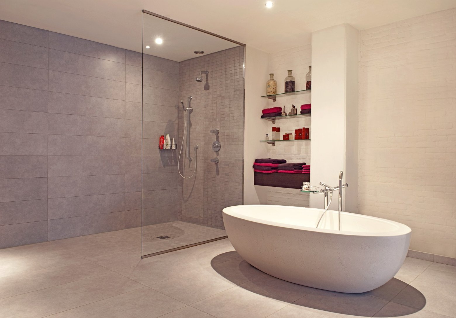 Jaarlijks renoveren wij honderden badkamers. Bijgevolg hebben wij een ruime ervaring opgebouwd in verschillende stijlen en indelingen van badkamerrenovaties. Van landelijk en klassiek tot modern en minimalistisch, Van Calster volgt de laatste trends. Bovendien beschikken wij als leverancier van tegels over een zeer uitgebreid gamma vloer- en wandtegels. Zo kies je bij jouw nieuwe badkamer er direct de juiste badkamertegels bij. Handig, toch? En uiteraard aan zeer correcte prijzen!